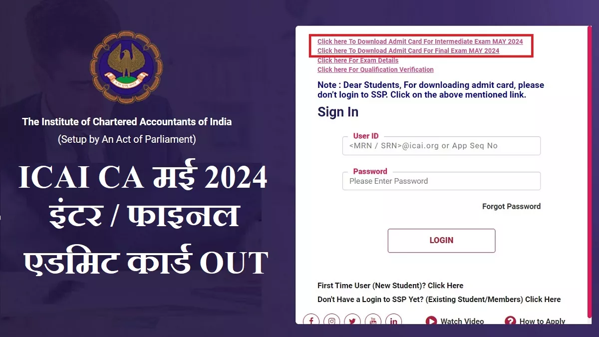 जारी हुए सीए फाइनल और इंटर मई परीक्षाओं के लिए एडमिट कार्ड, ICAI ने डाउनलोड लिंक एक्टिव किया