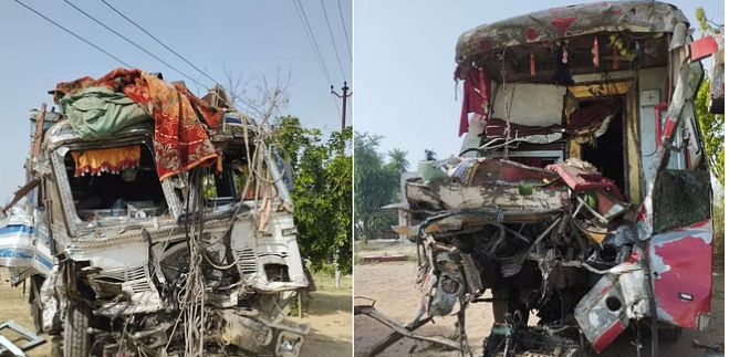 जानकारी के अनुसार, बदायूं के उझानी कोतवाली इलाके में बसोमा मोड़ के पास शनिवार रात एक डबल डेकर बस और ट्रक में आमने-सामने की भिड़ंत हो गई, जिसमें दो यात्रियों की मौत हो गई और करीब 27 लोग घायल हो गए। हादसा देर रात करीब 1:00 बजे हुआ। डबल डेकर बस बरेली से जयपुर जा रही थी। यह बस उझानी कोतवाली इलाके में बसोमा मोड़ के नजदीक पहुंची थी कि तभी अचानक गलत दिशा से आ रहा ट्रक बस से टकरा गया।