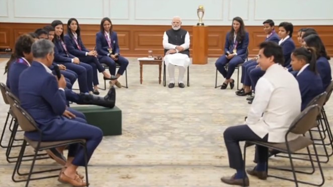 इसके बाद हरमनप्रीत बोलती हैं, ‘सर मुझे अभी भी याद है कि हम 2017 में आपसे मिले थे, लेकिन ट्रॉफी के साथ नहीं आए थे। यह हमारे लिए सम्मान की बात है कि जिस चीज के लिए हम इतने वर्षों से मेहनत कर रहे थे, वो ट्रॉफी लेकर हम आ पाए और आपने मिलकर हमारी खुशी को दोगुना और ज्यादा बढ़ा दी है। हमारा यही मकसद है कि हम भविष्य में आपसे और ज्यादा मिलें। बार बार आपके साथ और टीम के साथ तस्वीरें खिंचवाते रहें।’