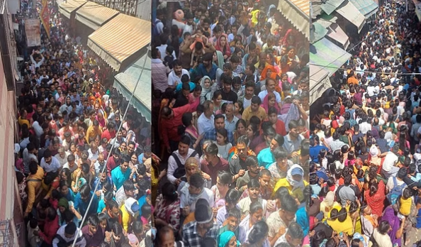खबर रफ़्तार, मथुरा : वृंदावन के ठाकुर बांके बिहारी मंदिर में तीसरे दिन रविवार को भी भक्तों का सैलाब उमड़ पड़ा। सुबह से ही 500 मीटर से अधिक लंबी श्रद्धालुओं की कतार लगी रही। मंदिर के पट बंद होने के बाद तक बांके बिहारी मंदिर के आसपास गलियों में प्रमुख मार्गों पर श्रद्धालुओं के सिर ही सिर नजर आए। भीषण गर्मी में भीड़ का दबाव और धक्का मुख के बीच सर्वाधिक परेशानी बुजुर्गों और महिला श्रद्धालुओं को हुई।